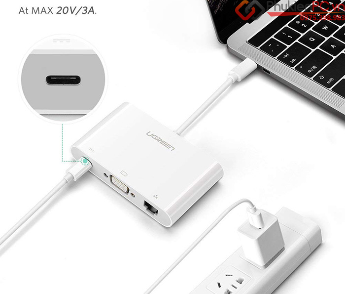 Cáp chuyển đổi Thunderbolt 3 ra VGA, LAN, USB 3.0 Ugreen 30439