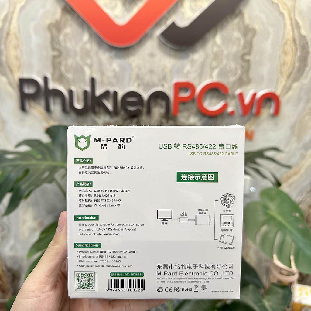 Cáp chuyển đổi tín hiệu USB sang COM RS485/RS422 thương hiệu M-PARD chất lượng tốt. Sử dụng kết nối máy tính, PLC, máy tính công nghiệp chân cắm USB ra các thiết bị điện tử, công nghiệp, truyền thông, pin năng lượng, thiết bị y tế, đo lường…giao tiếp RS422/RS485.
