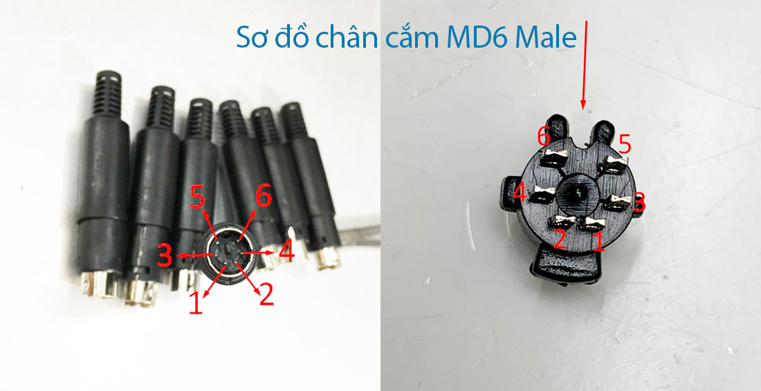 Chân cắm PLC Mitsubishi: MD6 Male – chân đực (tên khác: mini din 6pin, chân tròn, chân PS2)