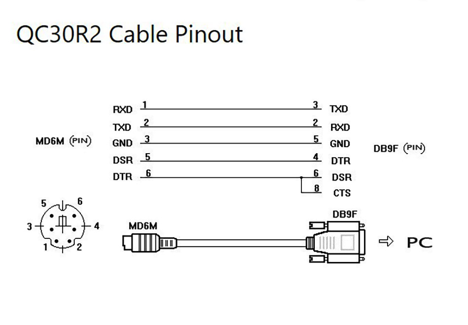 Cáp điều khiển lập trình QC30R2 PLC Mitsubishi dòng Q Series RS232 Female to MD6 Male (6Pin, PS/2 chân tròn) sử dụng kết nối Mitsubishi PLC dòng Q series ra màn hình HMI, PLC, máy tính PC, Laptop.