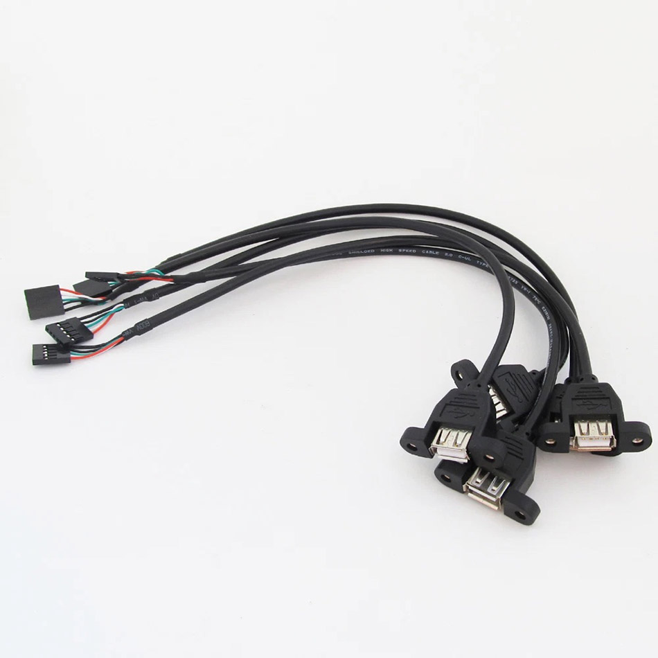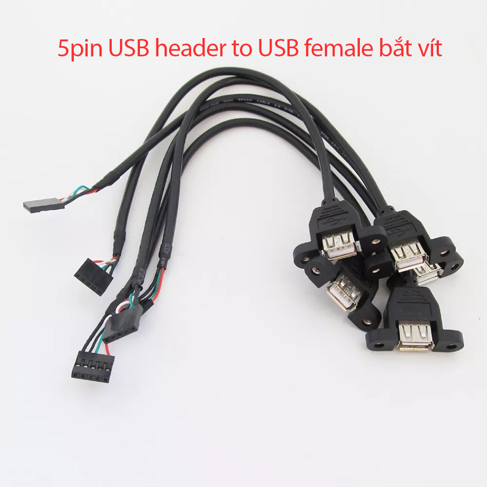 Cáp dữ liệu 5pin header 2.54mm cắm từ mainboard, bo mạch chủ máy tính công nghiệp, thiết bị điện tử…ra USB 2.0 female chân cái, đầu USB bắt vít gắn panel, thùng – thành máy.