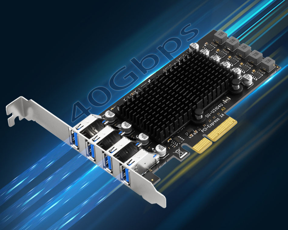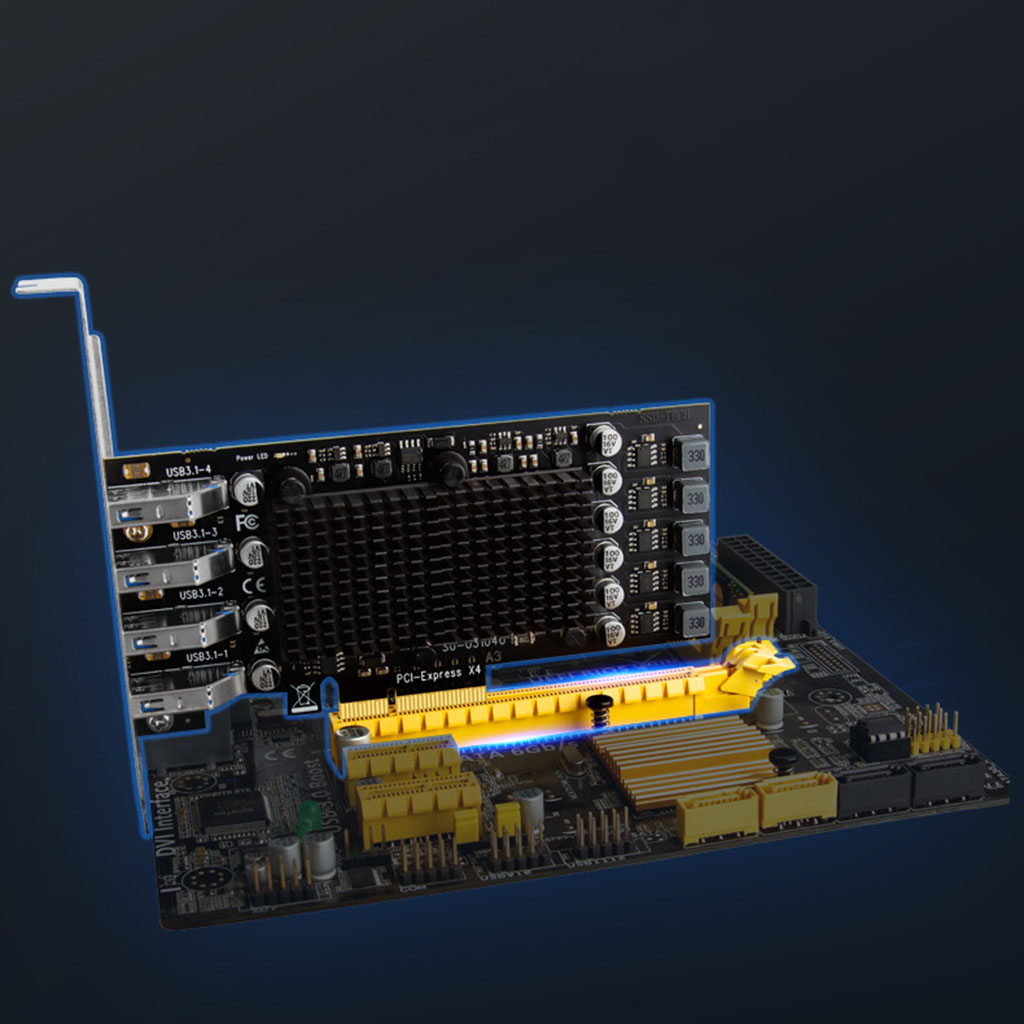 Card chuyển đổi PCIe x4 to 4 Port USB 10Gbps tốc độ cao. Chuyên sử dụng kết nối máy tính PC, máy tính đồng bộ, máy trạm… ra các thiết bị giao tiếp USB cần tốc độ cao như: camera vision công nghiệp, máy ảnh, máy quay phim, docking, hdd box…