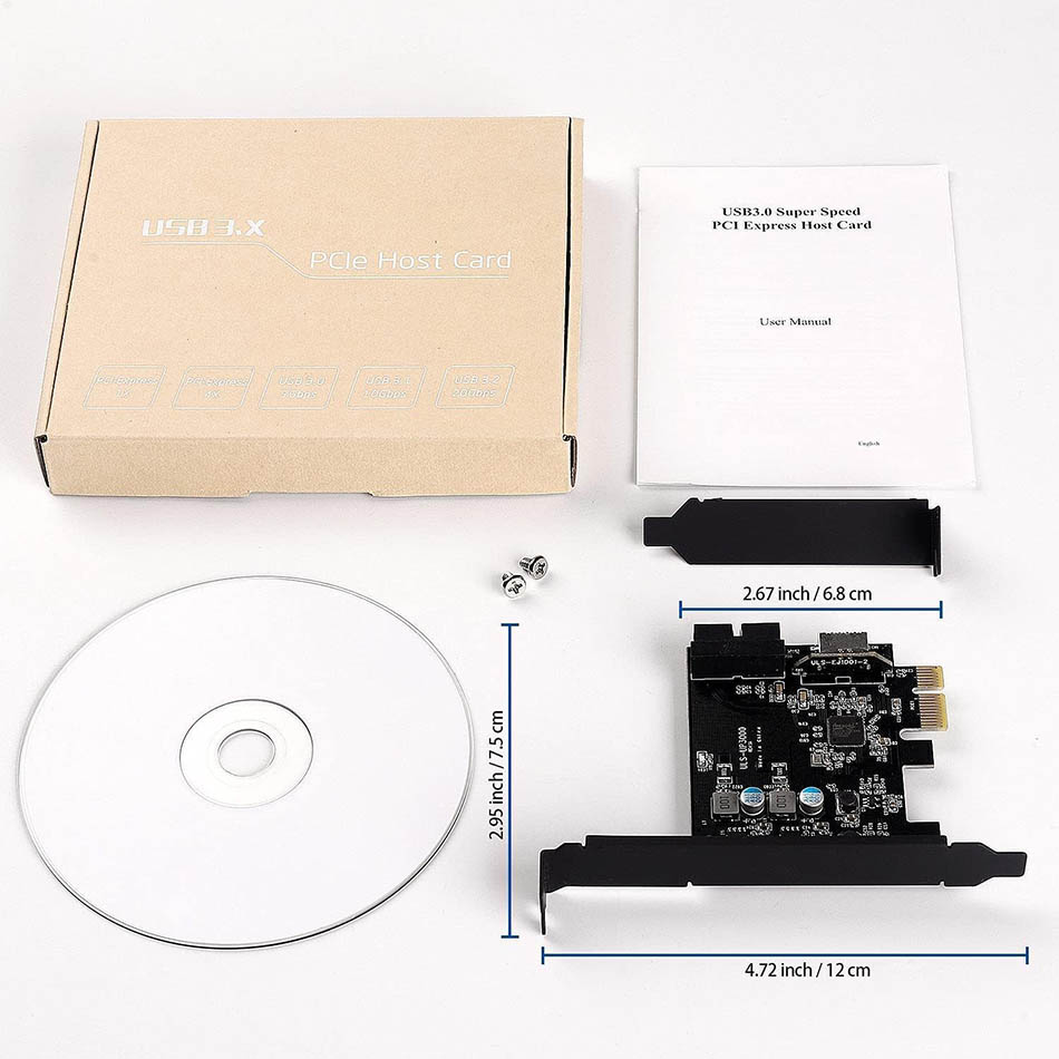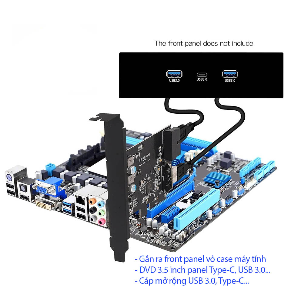 Card mở rộng PCIe x1 to USB 3.0 20pin, Type-E Header 5Gbps. Kết nối máy tính ra front panel vỏ case, hub DVD USB 3.0, cáp mở rộng 20pin, type-C