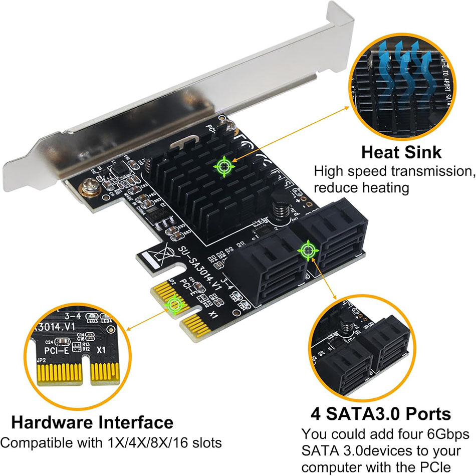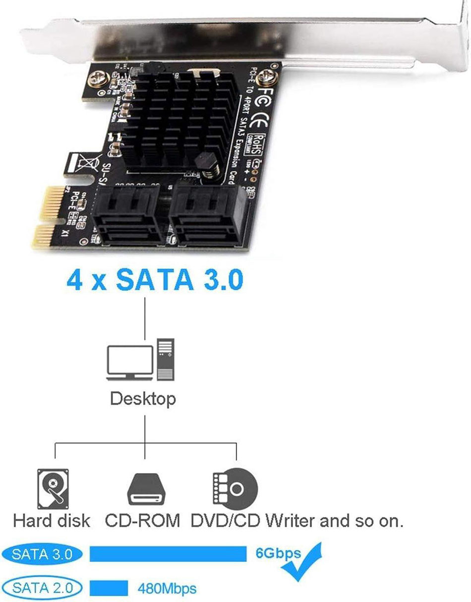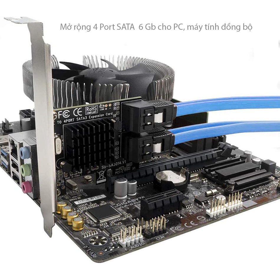 Card mở rộng (PCI-E Expasion) sang 4 cổng SATA 3 tốc độ 6Gbps cao nhất hiện nay. Mở rộng thêm 4 cổng SATA 3 cho máy tính bàn, máy tính đồng bộ, server. Sản phẩm giúp bạn dễ dàng gắn thêm nhiều ổ cứng HDD, SSD cho máy tính.