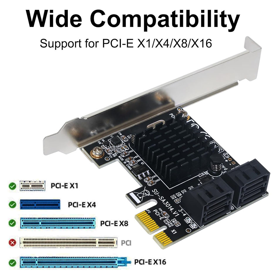 Chuẩn SATA III tốc độ 6 Gbps, tương thích với HDD, SSD chuẩn SATA I, II. Sử dụng cho hầu hết các dòng mainboard hiện nay PCIe 1.0, PCIe 2.0, PCIe 3.0