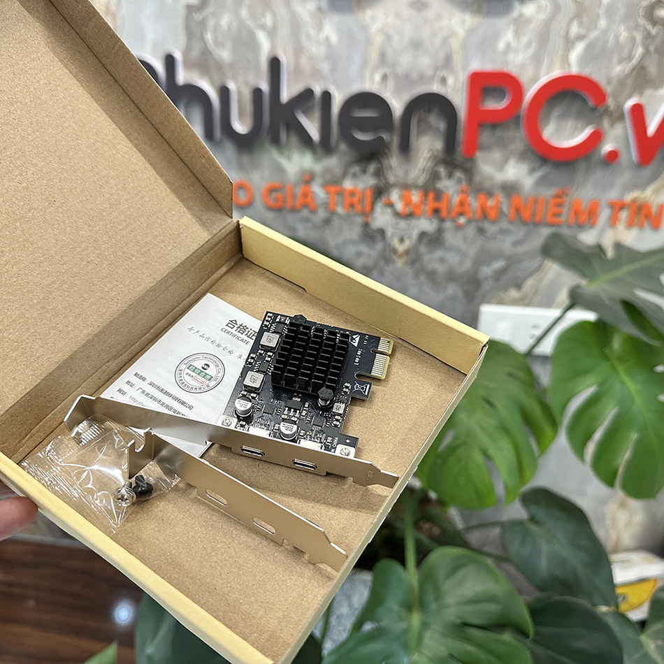 Card PCIe 3.0 x1 to USB 3.2 GEN 2 Type C 10 Gbps mở rộng 2 cổng Type C cho PC, máy tính đồng bộ