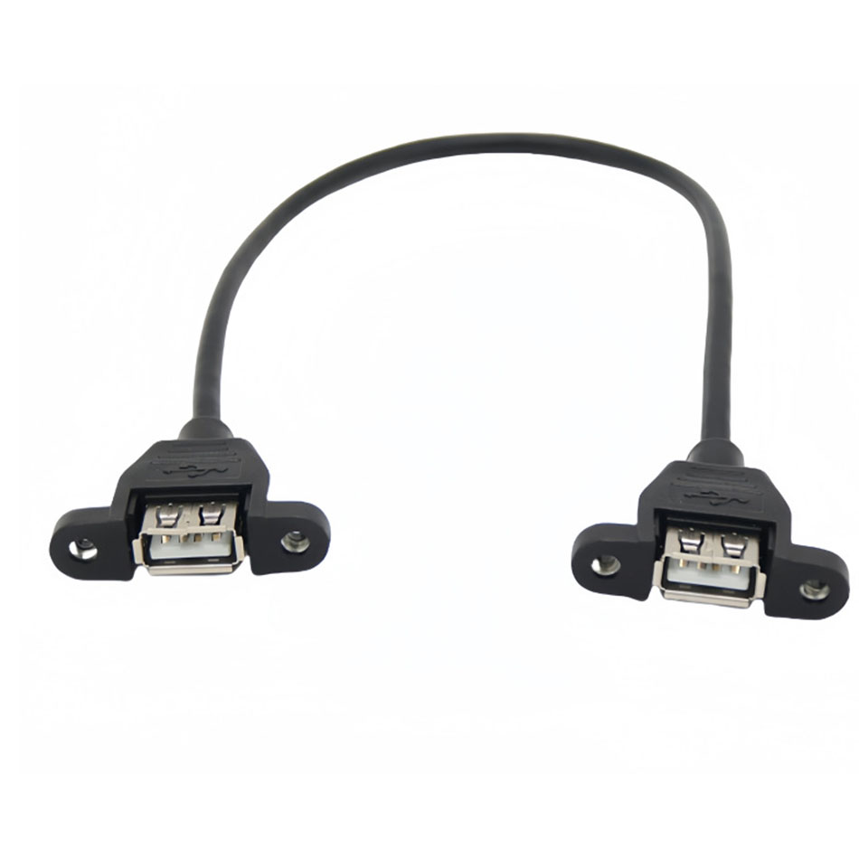 Dây cáp chuyển đổi USB 2.0 female to female (Usb cái – cái). Hai đầu USB thiết kế dạng bắt vít gắn panel, thùng máy, tủ, bảng điều khiển. Ứng dụng trong nhà máy, khu công nghiệp, chế xuất. Kết nối, test các thiết bị giao tiếp USB với nhau.