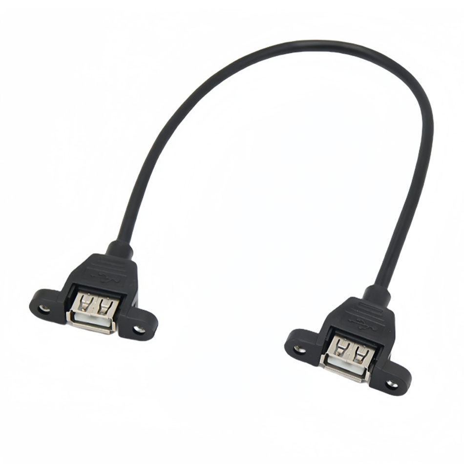 Dây cáp chuyển đổi USB 2.0 female to female (Usb cái – cái). Hai đầu USB thiết kế dạng bắt vít gắn panel, thùng máy, tủ, bảng điều khiển. Ứng dụng trong nhà máy, khu công nghiệp, chế xuất. Kết nối, test các thiết bị giao tiếp USB với nhau.