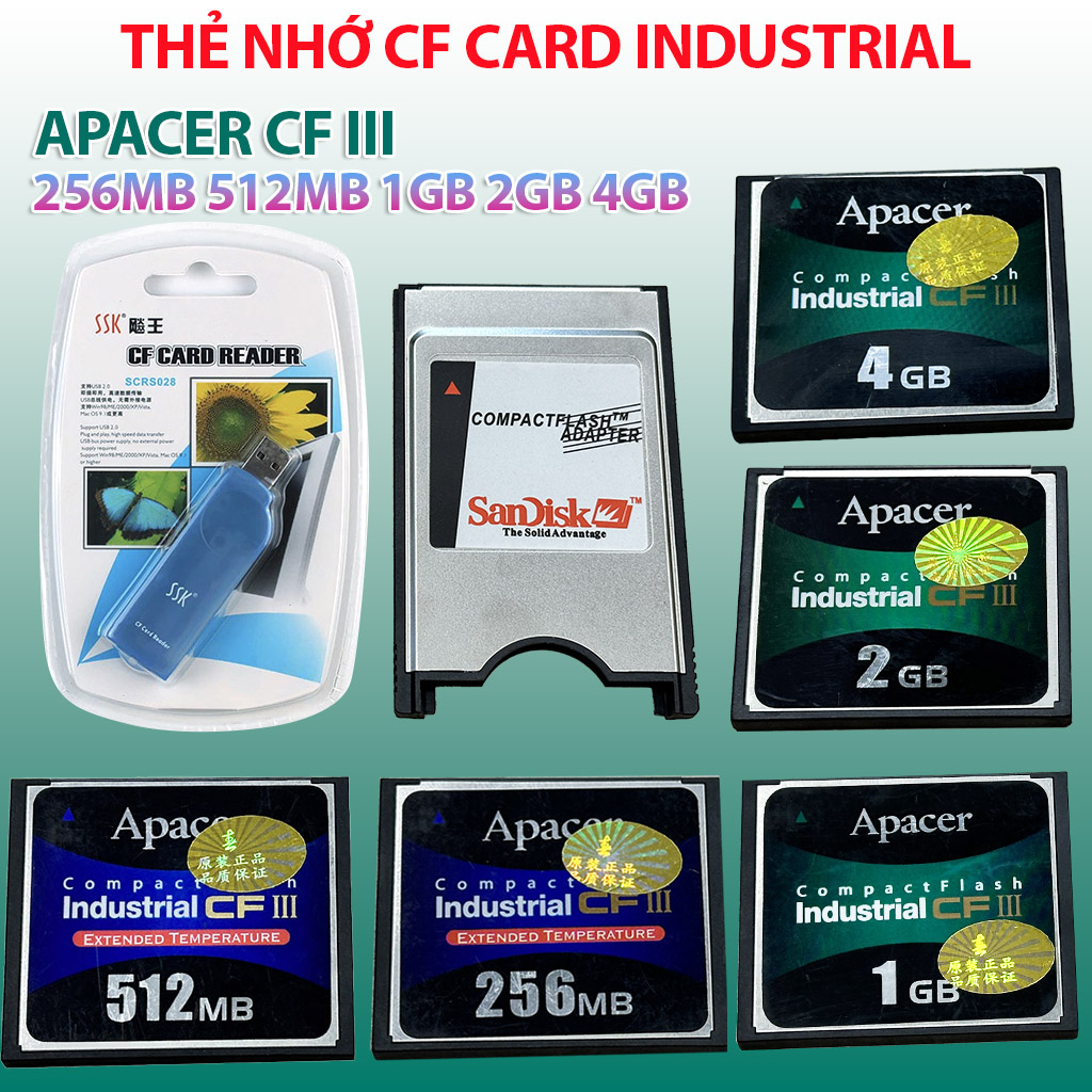 Thẻ nhớ CF Card APACER CF III Industrial công nghiệp cho máy CNC 256MB 512MB 1GB 2GB 4GB